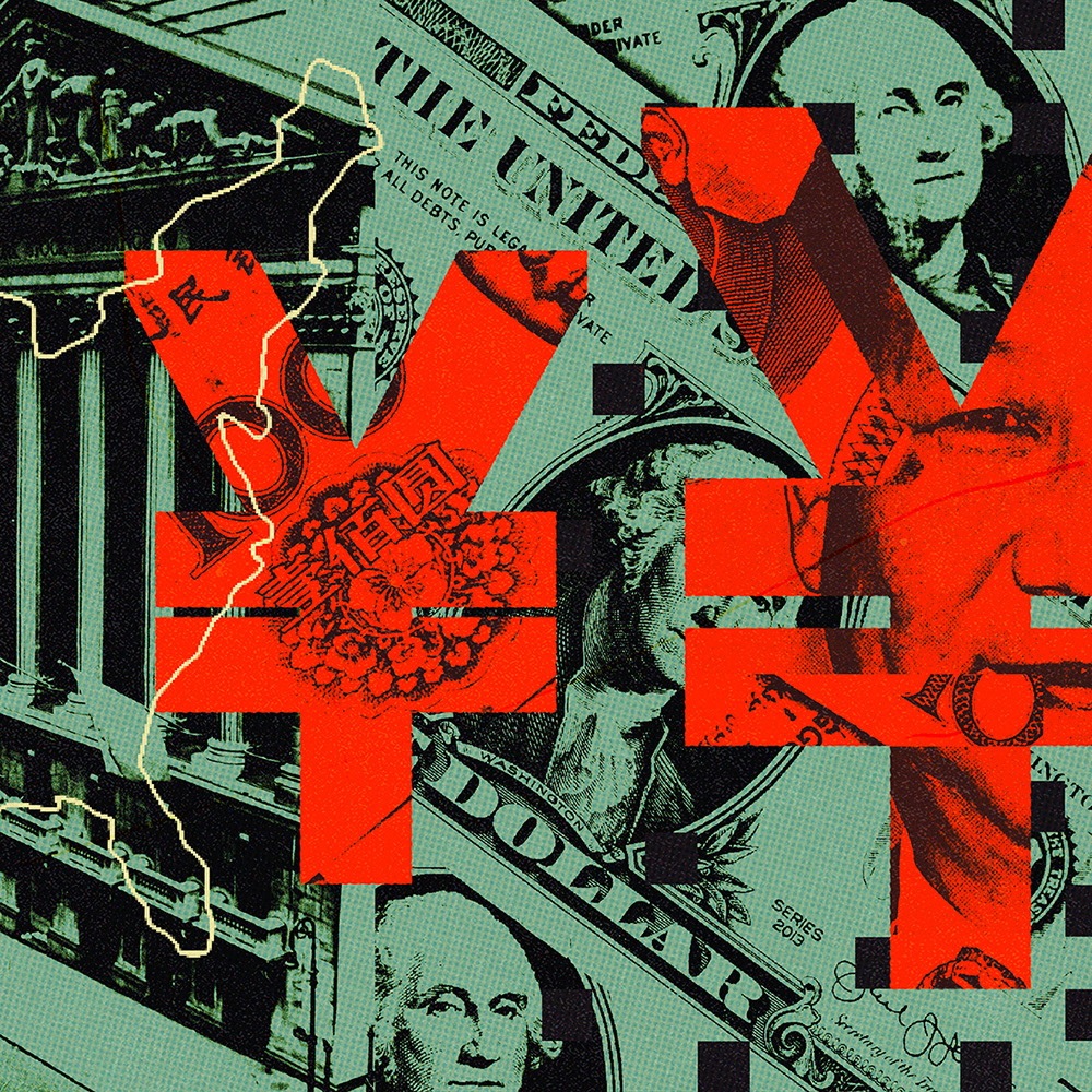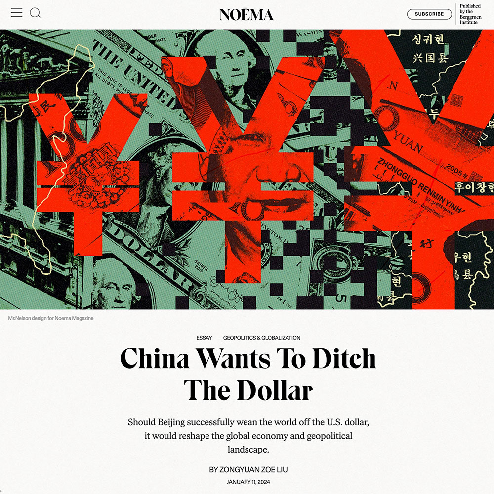 Editorial illustration for the article: China wants to ditch the Dollar. AD: Amara Higuera