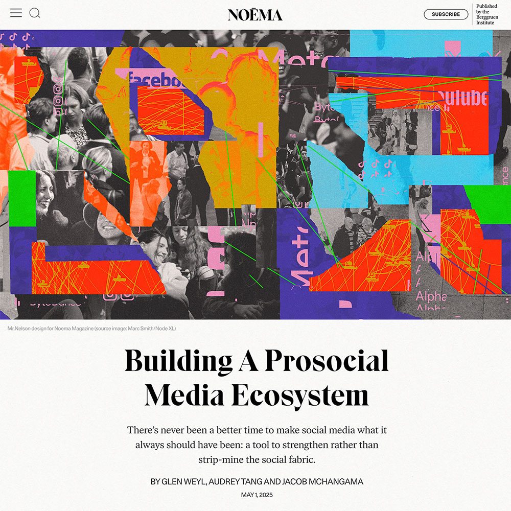 Editorial illustration for Noema Magazine - Building a prosocial media ecosystem.